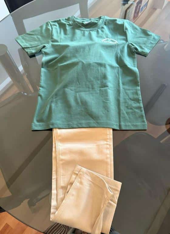 Okulumuz kıyafetleri Nefti yeşil tişört ve bej pantolon olarak...